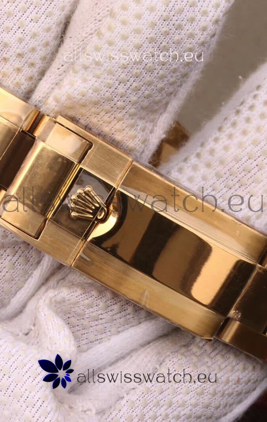 18K Yellow Gold Plating on 904 Solid Stainless Case with Rolex Markings and Engravings like the Authentic.