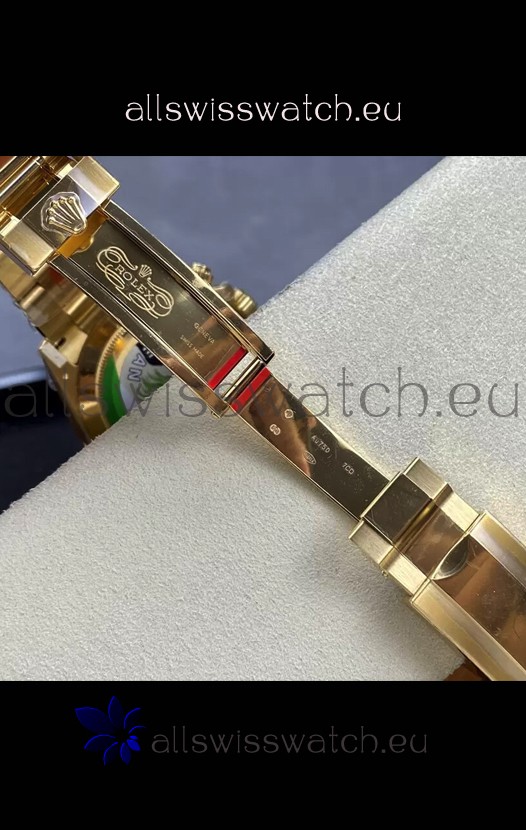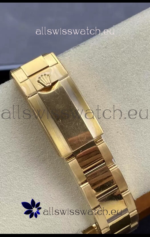 18K Yellow Gold Plating on 904 Solid Stainless Case with Rolex Markings and Engravings like the Authentic.