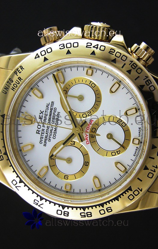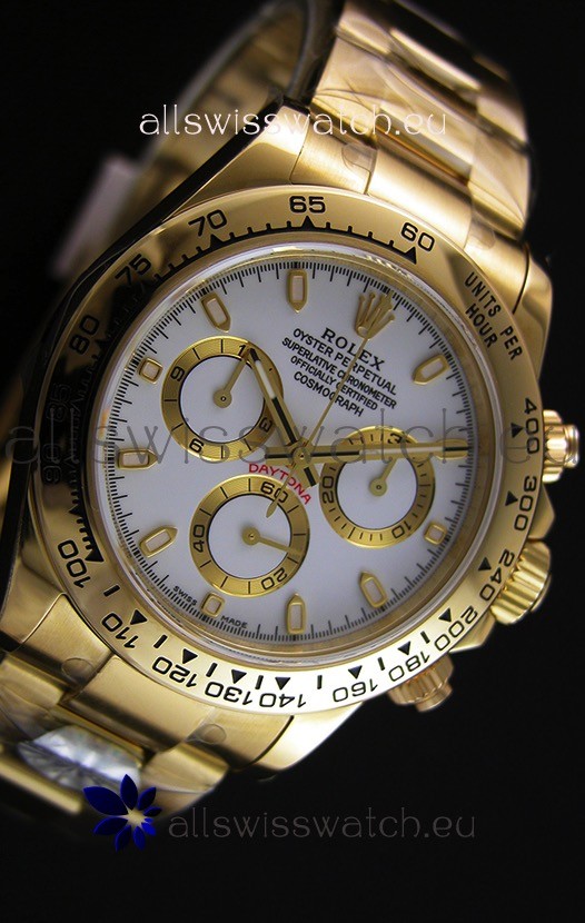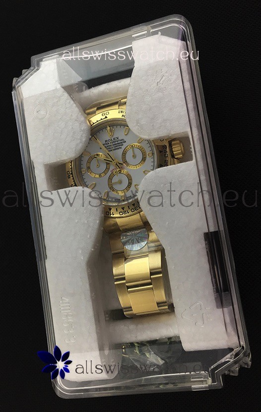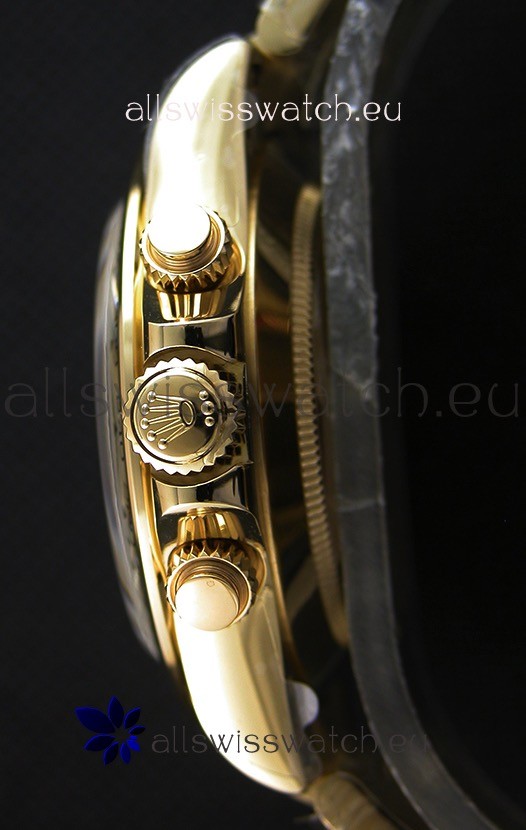 The Best Rolex Daytona Model Replicated up to Date. The First Rolex model to adopt a 904L Steel on Casing and Strap which is the same steel used by Rolex. Compared with an Original Side by Side and there were NO Differences Whatsoever. Complete list of details have been stated below and you will see that tremendous amount of detaiing and work has been put into this edition.