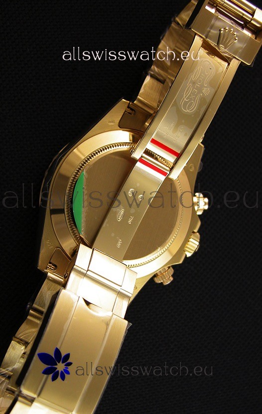 18K Yellow Gold Plating on 904 Solid Stainless Case with Rolex Markings and Engravings like the Authentic.
