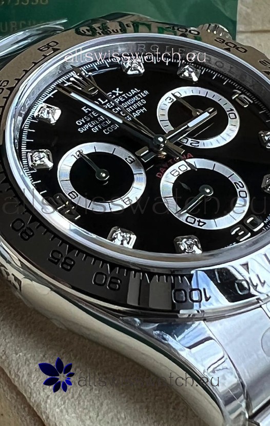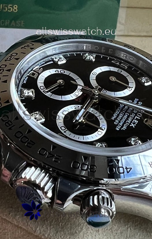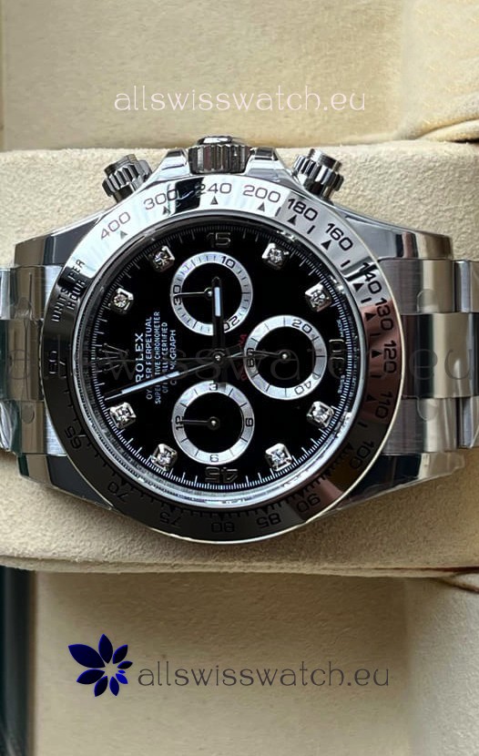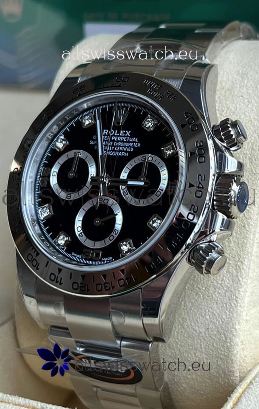 The Best Rolex Daytona Model Replicated up to Date. The First Rolex model to adopt a 904L Steel on Casing and Strap which is the same steel used by Rolex. Compared with an Original Side by Side and there were NO Differences Whatsoever. Complete list of details have been stated below and you will see that tremendous amount of detaiing and work has been put into this edition.