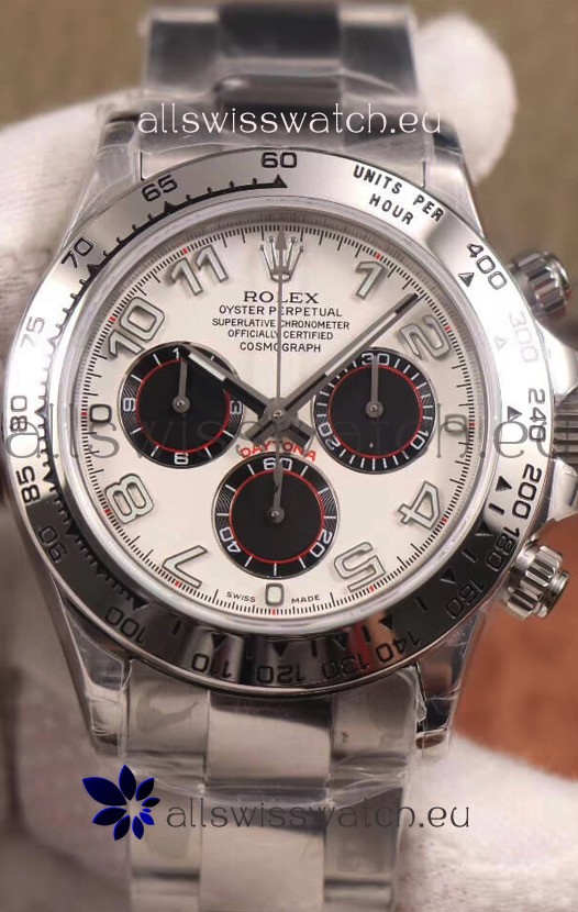 The Best Rolex Daytona Model Replicated up to Date. The First Rolex model to adopt a 904L Steel on Casing and Strap which is the same steel used by Rolex. Compared with an Original Side by Side and there were NO Differences Whatsoever. Complete list of details have been stated below and you will see that tremendous amount of detaiing and work has been put into this edition.