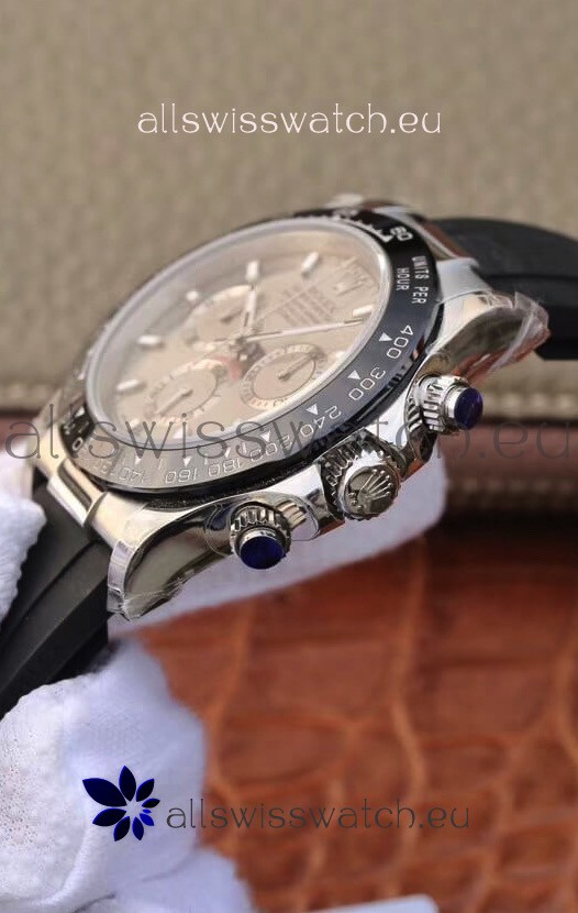 The Best Rolex Daytona Model Replicated up to Date. The First Rolex model to adopt a 904L Steel on Casing and Strap which is the same steel used by Rolex. Compared with an Original Side by Side and there were NO Differences Whatsoever. Complete list of details have been stated below and you will see that tremendous amount of detaiing and work has been put into this edition.