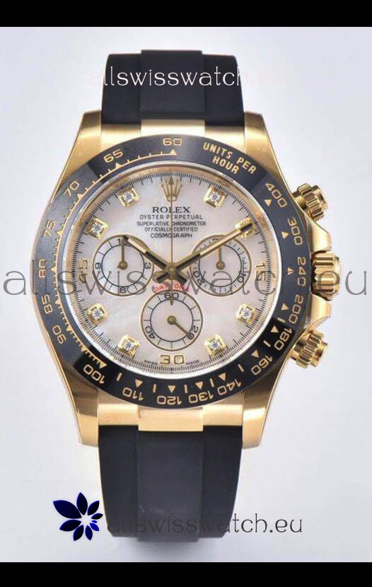 The Best Rolex Daytona Model Replicated up to Date. The First Rolex model to adopt a 904L Steel on Casing and Strap which is the same steel used by Rolex. Compared with an Original Side by Side and there were NO Differences Whatsoever. Complete list of details have been stated below and you will see that tremendous amount of detaiing and work has been put into this edition.