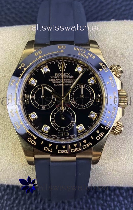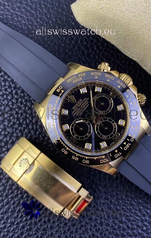 The Best Rolex Daytona Model Replicated up to Date. The First Rolex model to adopt a 904L Steel on Casing and Strap which is the same steel used by Rolex. Compared with an Original Side by Side and there were NO Differences Whatsoever. Complete list of details have been stated below and you will see that tremendous amount of detaiing and work has been put into this edition.