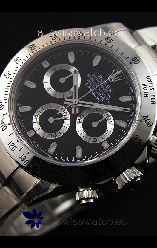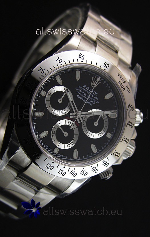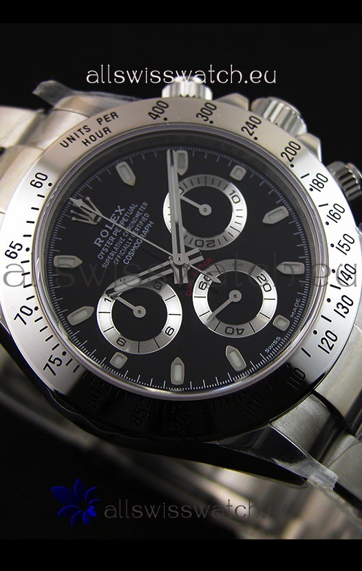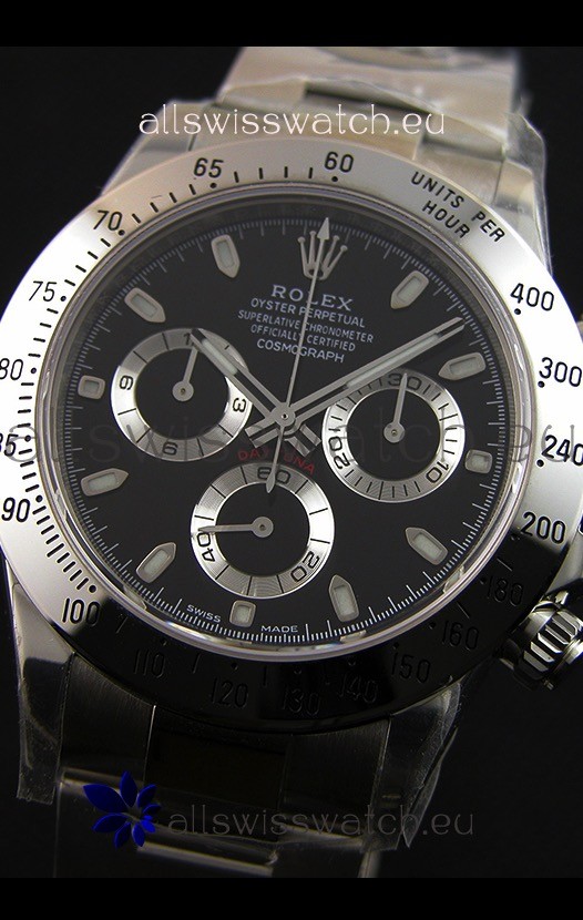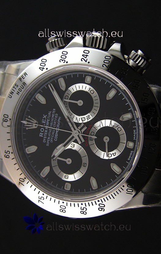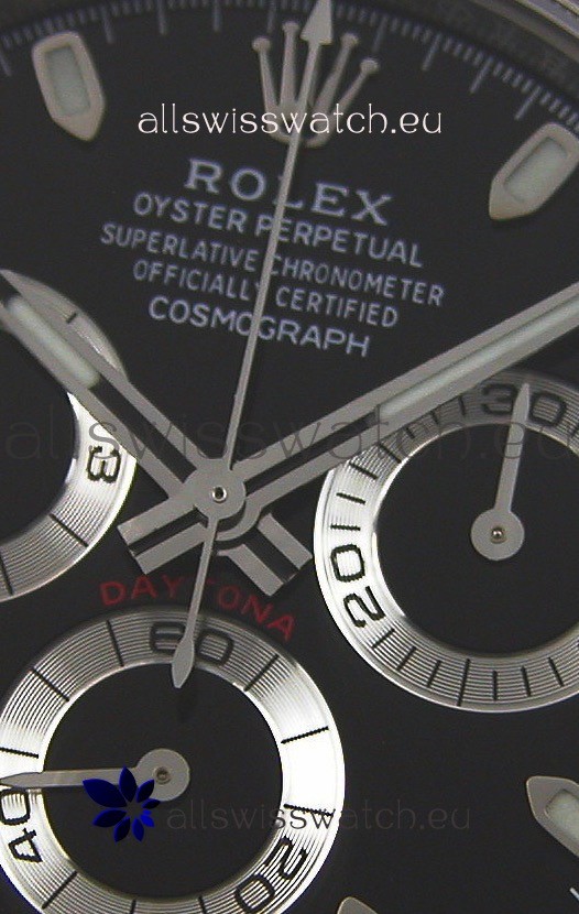 The Best Rolex Daytona Model Replicated up to Date. The First Rolex model to adopt a 904L Steel on Casing and Strap which is the same steel used by Rolex. Compared with an Original Side by Side and there were NO Differences Whatsoever. Complete list of details have been stated below and you will see that tremendous amount of detaiing and work has been put into this edition.