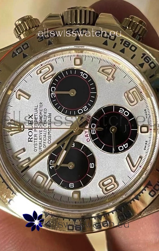 The Best Rolex Daytona Model Replicated up to Date. The First Rolex model to adopt a 904L Steel on Casing and Strap which is the same steel used by Rolex. Compared with an Original Side by Side and there were NO Differences Whatsoever. Complete list of details have been stated below and you will see that tremendous amount of detaiing and work has been put into this edition.