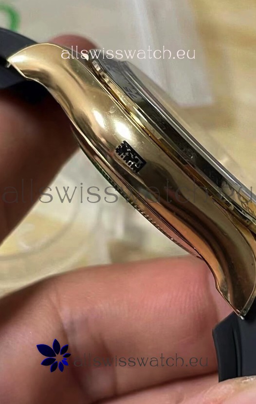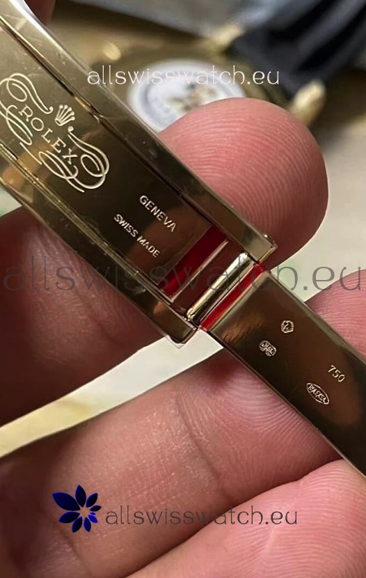 18K Yellow Gold Plating on 904 Solid Stainless Case with Rolex Markings and Engravings like the Authentic.