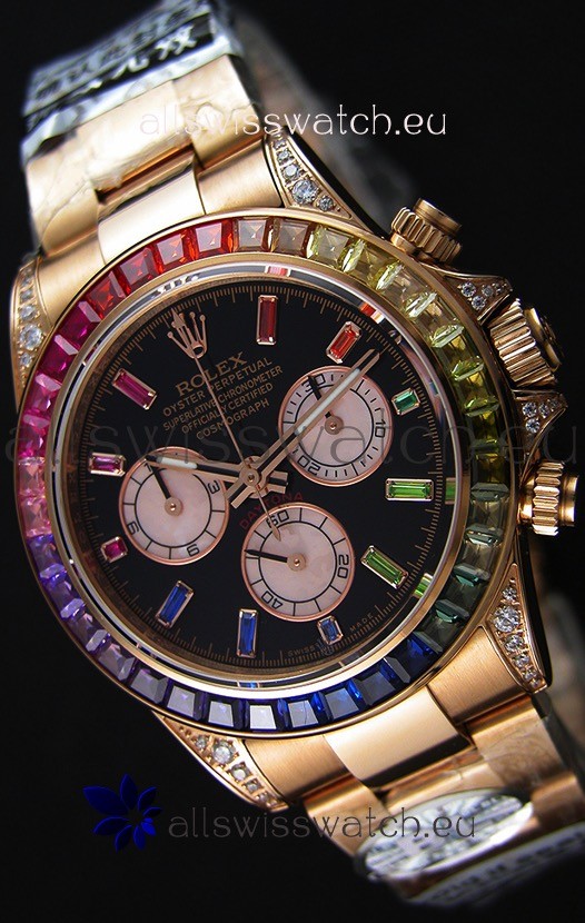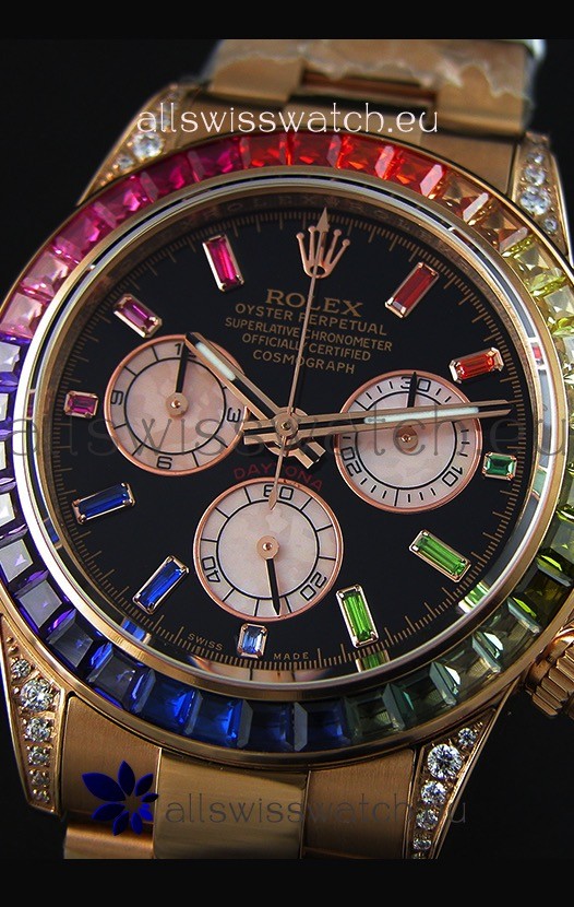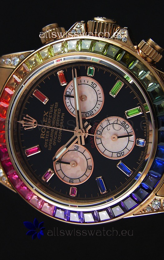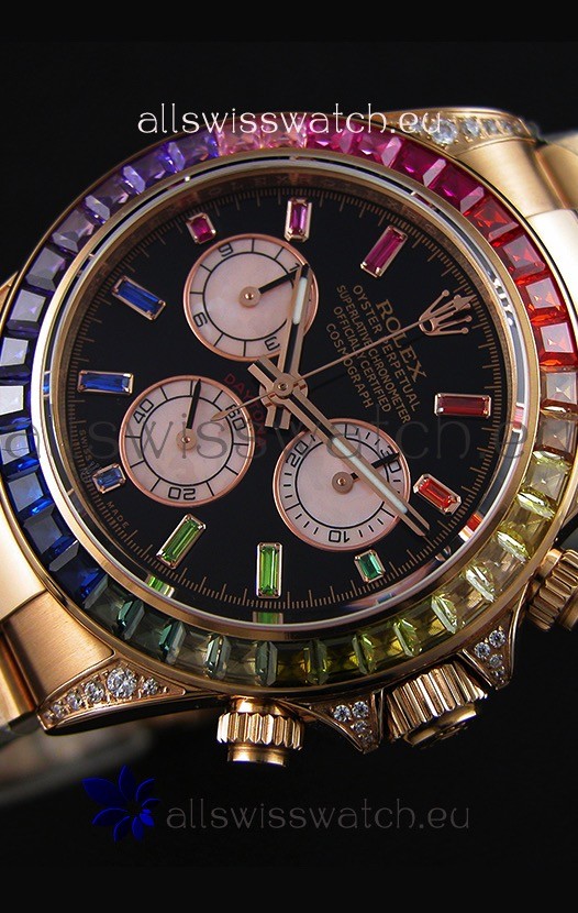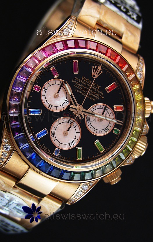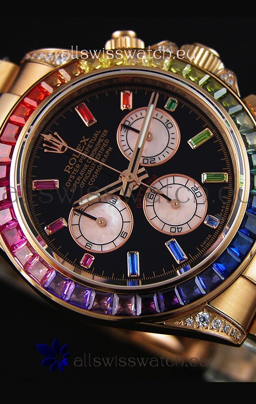 High Quality Cut Multicolored Bezel as per the original, Gemstones coloring is on par with the Originals