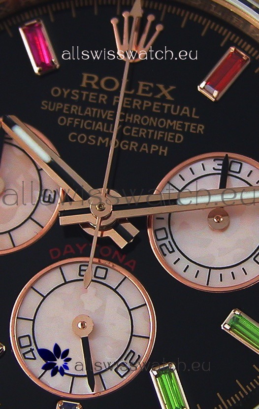 The Best Rolex Daytona Model Replicated up to Date. The First Rolex model to adopt a 904L Steel on Casing and Strap which is the same steel used by Rolex. Compared with an Original Side by Side and there were NO Differences Whatsoever. Complete list of details have been stated below and you will see that tremendous amount of detaiing and work has been put into this edition.