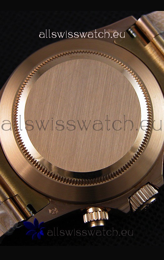 18K 10.0 Microns Thick Everose Gold Plating on 904L Solid Stainless Case with Rolex Markings and Engravings like the Authentic. High Quality Swiss Cut Diamonds on Watch Casing