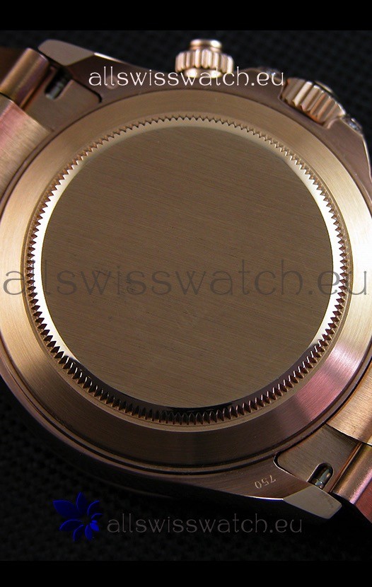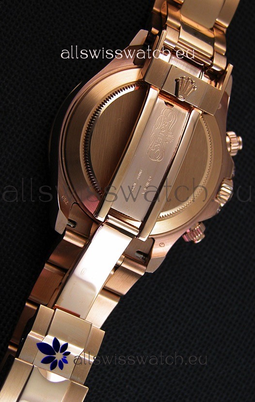 18K 10.0 Microns Thick Everose Gold Plating on 316L Solid Stainless Case with Rolex Markings and Engravings like the Authentic. High Quality Swiss Cut Diamonds on Watch Casing