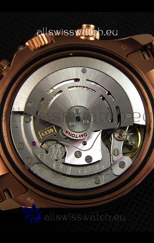 Genuine Swiss 7753 Movement Assembled to Resemble the Authentic Rolex Cal.4130 Movement with Platinum Plating on Rotors and Plates.