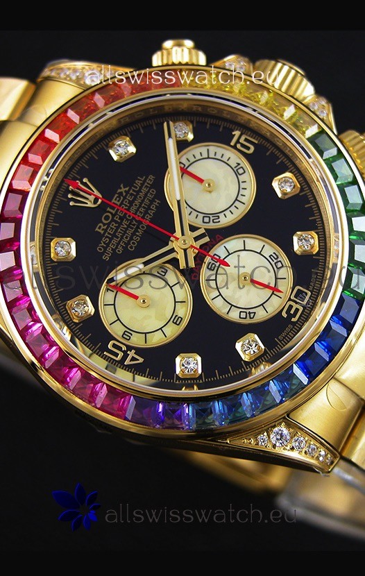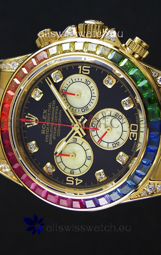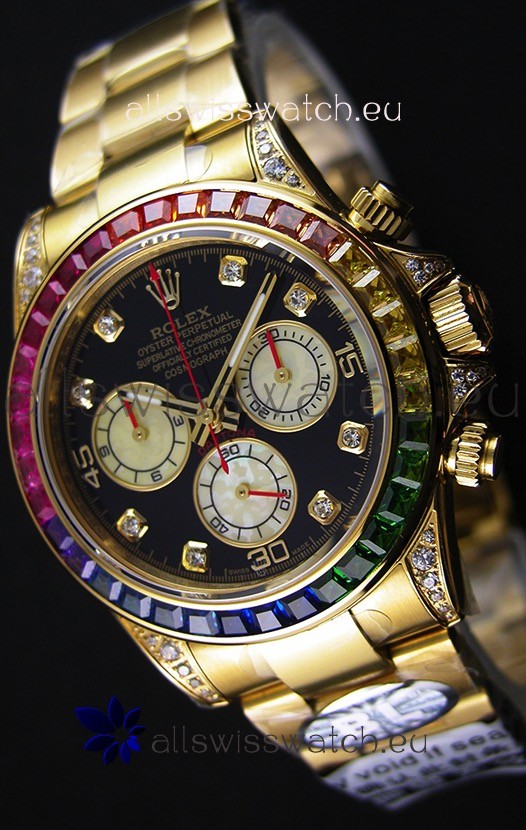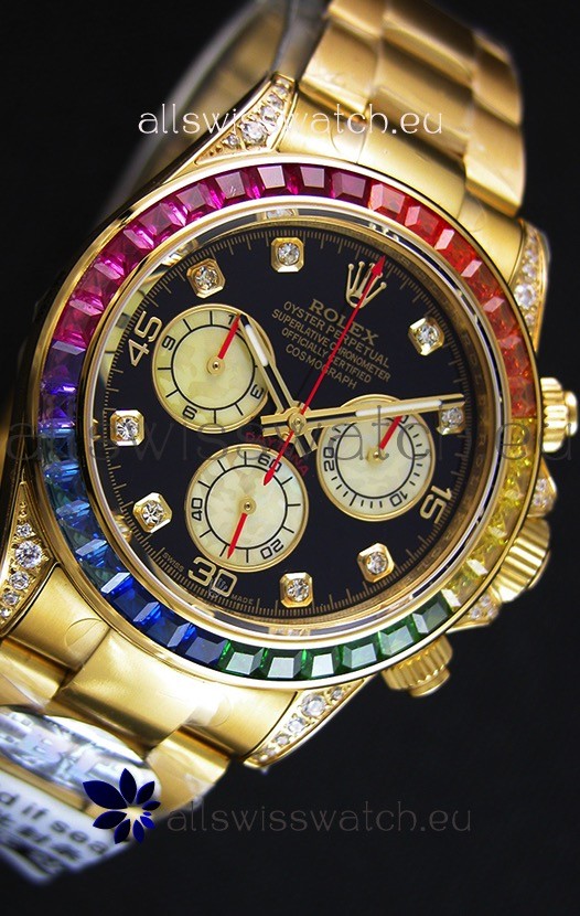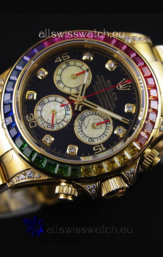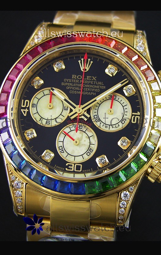 High Quality Cut Multicolored Bezel as per the original, Gemstones coloring is on par with the Originals
