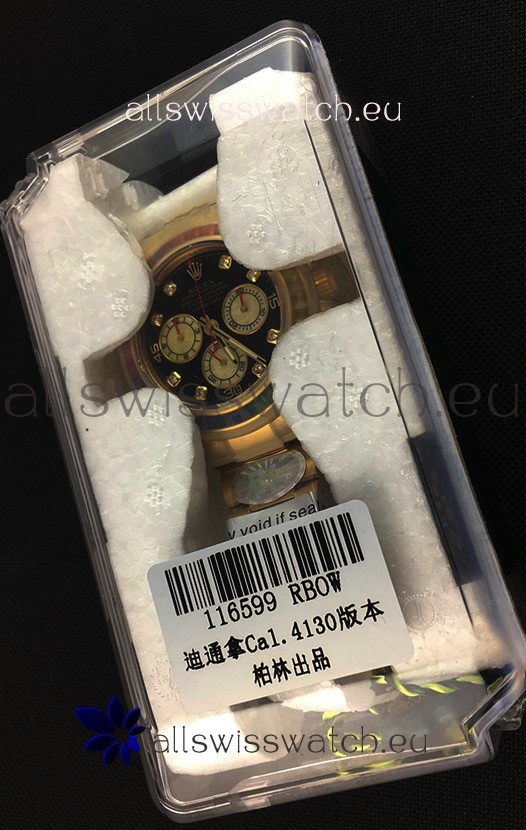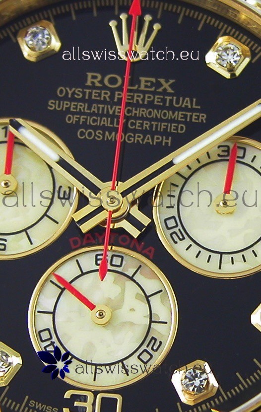 The Best Rolex Daytona Model Replicated up to Date. The First Rolex model to adopt a 904L Steel on Casing and Strap which is the same steel used by Rolex. Compared with an Original Side by Side and there were NO Differences Whatsoever. Complete list of details have been stated below and you will see that tremendous amount of detaiing and work has been put into this edition.