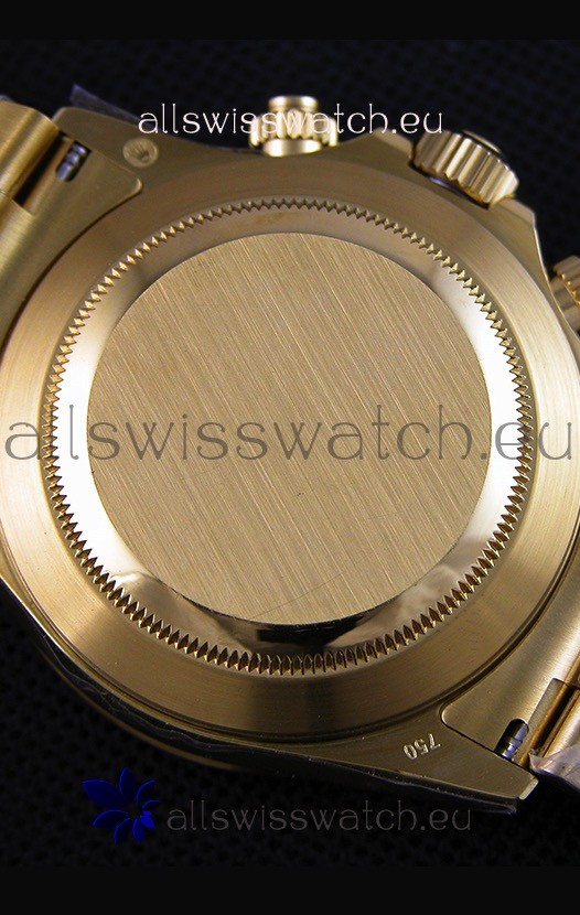 18K 10.0 Microns Thick Yellow Gold Plating on 904L Solid Stainless Case with Rolex Markings and Engravings like the Authentic. High Quality Swiss Cut Diamonds on Watch Casing
