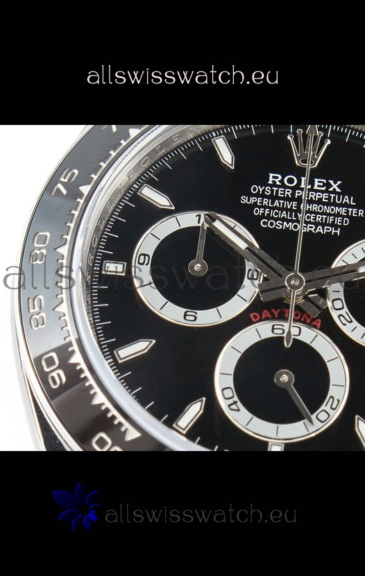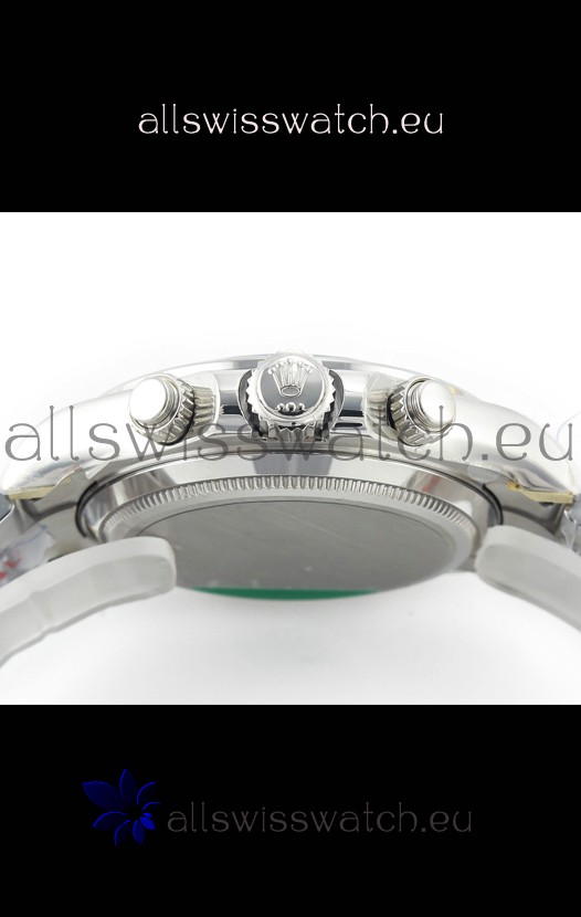 The Best Rolex Daytona Model Replicated up to Date. The First Rolex model to adopt a 904L Steel on Casing and Strap which is the same steel used by Rolex. Compared with an Original Side by Side and there were NO Differences Whatsoever. Complete list of details have been stated below and you will see that tremendous amount of detaiing and work has been put into this edition.