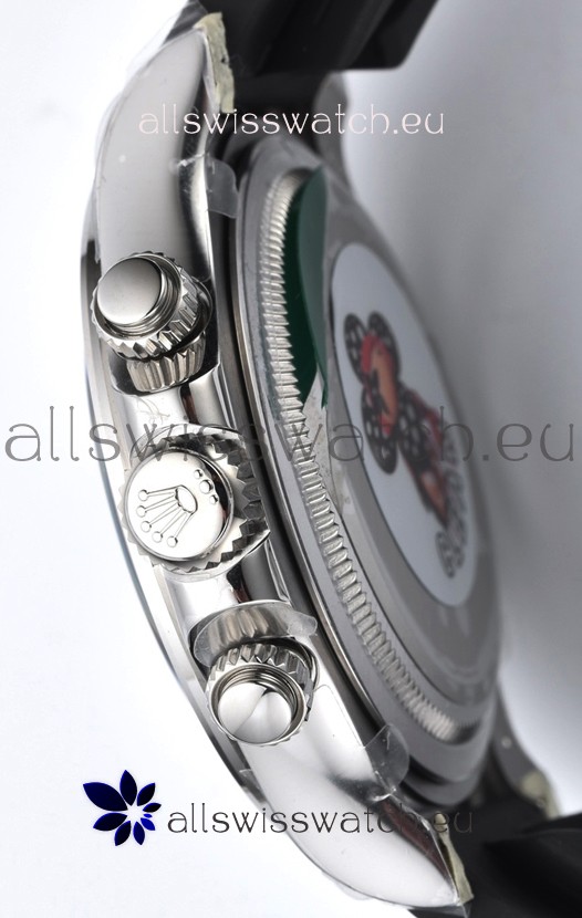 The Best Rolex Daytona Model Replicated up to Date. The First Rolex model to adopt a 904L Steel on Casing and Strap which is the same steel used by Rolex. Compared with an Original Side by Side and there were NO Differences Whatsoever. Complete list of details have been stated below and you will see that tremendous amount of detaiing and work has been put into this edition.
