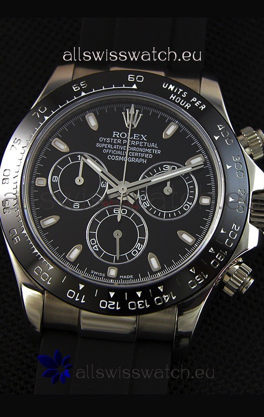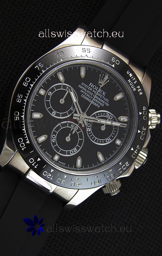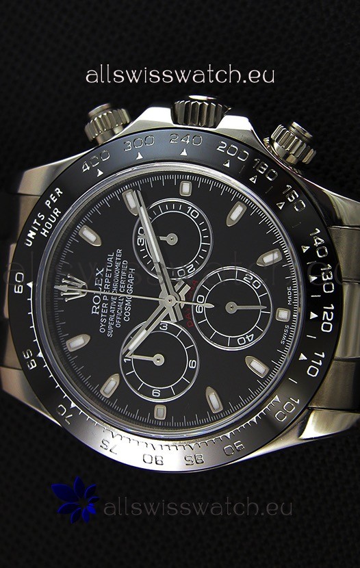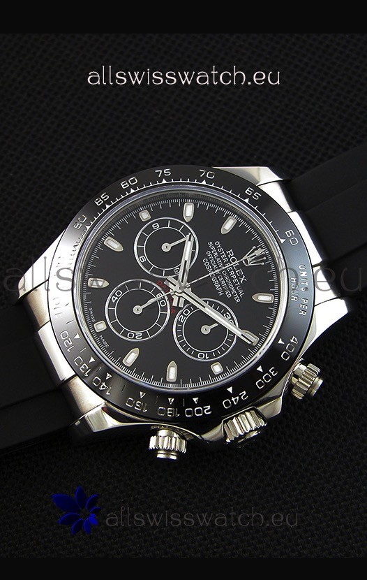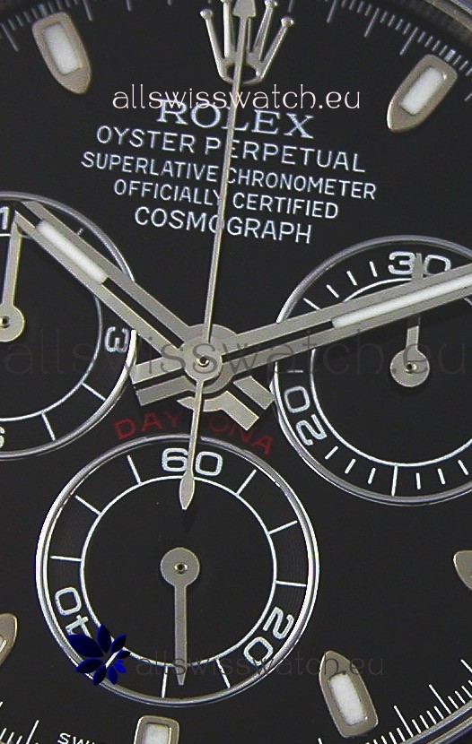 The Best Rolex Daytona Model Replicated up to Date. The First Rolex model to adopt a 904L Steel on Casing and Strap which is the same steel used by Rolex. Compared with an Original Side by Side and there were NO Differences Whatsoever. Complete list of details have been stated below and you will see that tremendous amount of detaiing and work has been put into this edition.