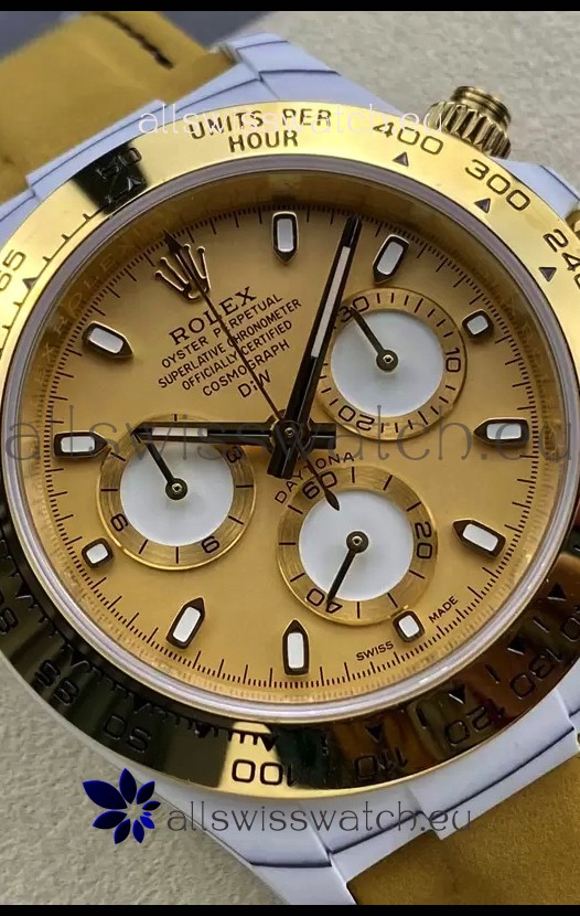 Gold Dial with Three Functional Sub dials working in conjunction to the stopwatch feature as per the originals.