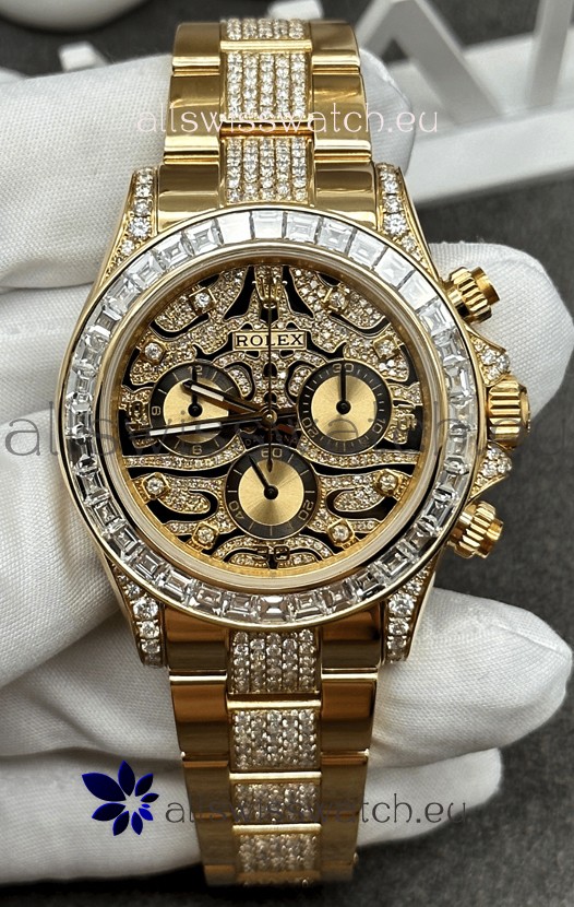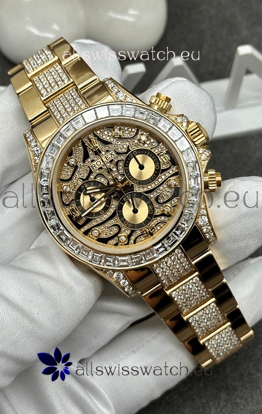 Diamonds Embedded Dial with 3 Functional Sub Dials working as per the Originals. Genuine Diamonds Bezel which passes Diamond Testers.