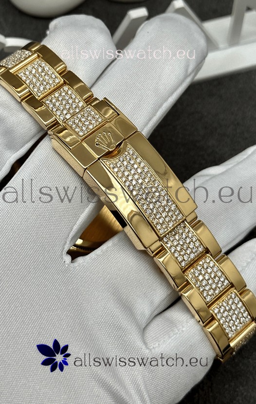 904L Stainless Steel Casing with Diamonds Paved Mid-Links, Linked with screws exactlty as per the Genuine complete with Revised Clasps release as per the Genuine with very Smooth Locking and detach lock systems as per the genuine