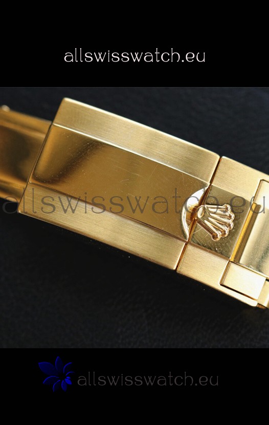18K Yellow Gold Plating on 904 Solid Stainless Case with Rolex Markings and Engravings like the Authentic.