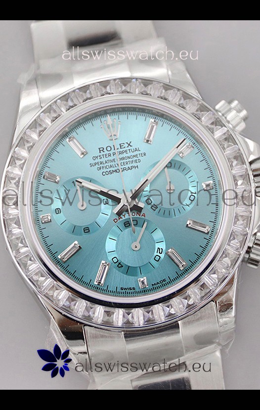 Rolex Cosmograph Daytona ICE Blue Dial Diamonds Bezel Cal.4130 Movement - 904L Steel Watch