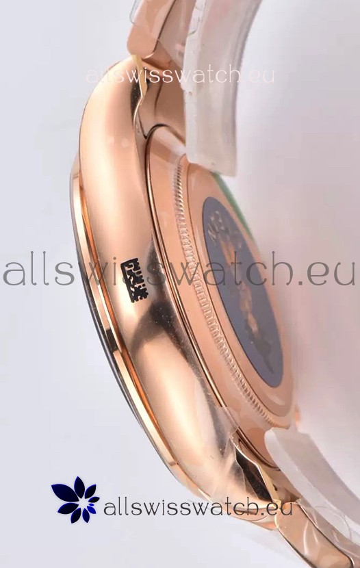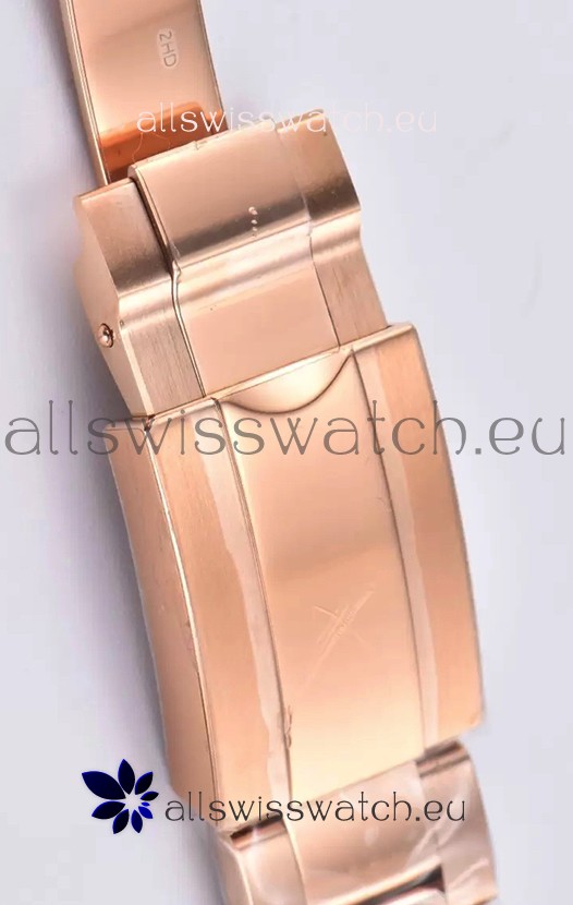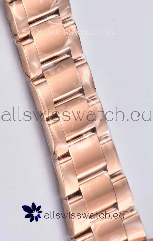 Rose Gold Plating on 904 Solid Stainless Case with Rolex Markings and Engravings like the Authentic.