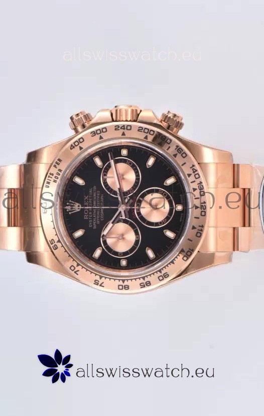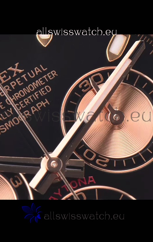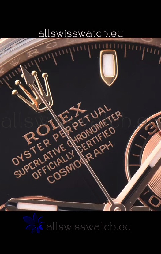 The Best Rolex Daytona Model Replicated up to Date. The First Rolex model to adopt a 904L Steel on Casing and Strap which is the same steel used by Rolex. Compared with an Original Side by Side and there were NO Differences Whatsoever. Complete list of details have been stated below and you will see that tremendous amount of detaiing and work has been put into this edition.
