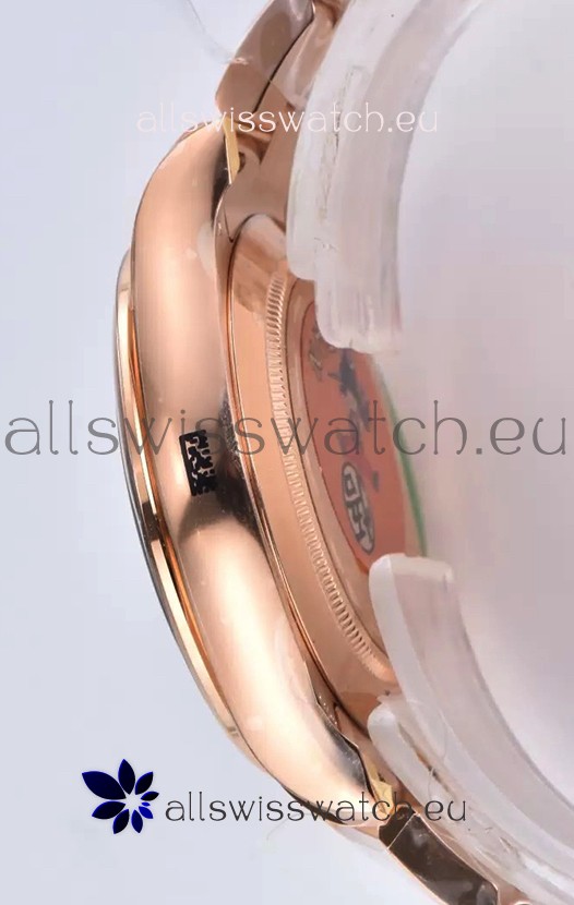 Rose Gold Plating on 904 Solid Stainless Case with Rolex Markings and Engravings like the Authentic.