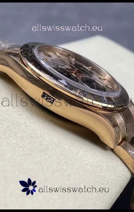 18K Rose Gold Plating on 904 Solid Stainless Case with Rolex Markings and Engravings like the Authentic.