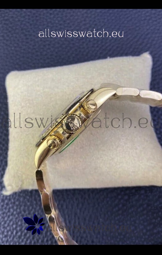 The Best Rolex Daytona Model Replicated up to Date. The First Rolex model to adopt a 904L Steel on Casing and Strap which is the same steel used by Rolex. Compared with an Original Side by Side and there were NO Differences Whatsoever. Complete list of details have been stated below and you will see that tremendous amount of detaiing and work has been put into this edition.