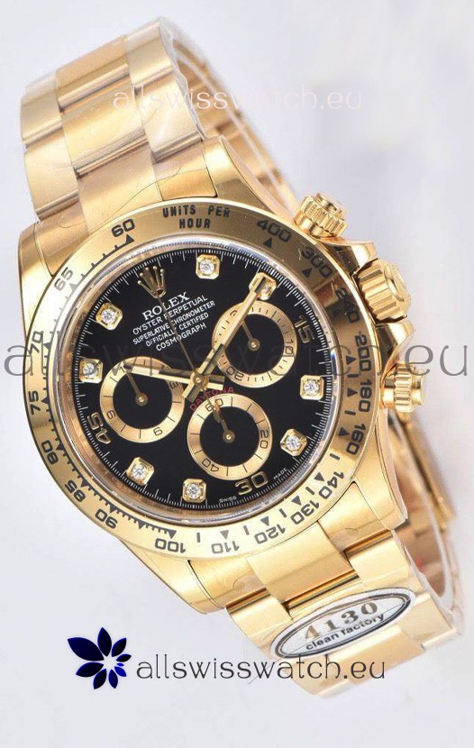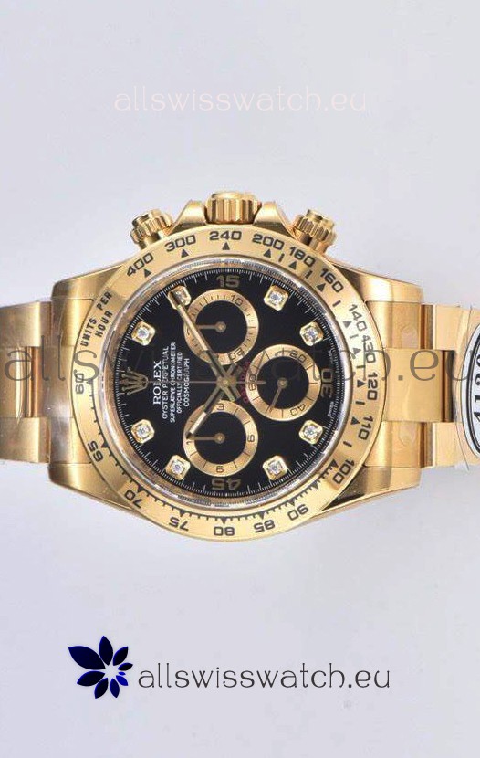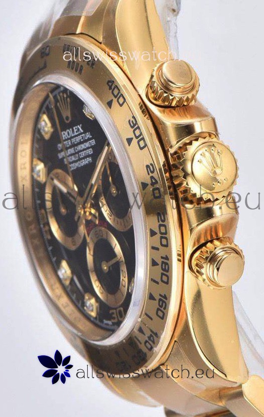 The Best Rolex Daytona Model Replicated up to Date. The First Rolex model to adopt a 904L Steel on Casing and Strap which is the same steel used by Rolex. Compared with an Original Side by Side and there were NO Differences Whatsoever. Complete list of details have been stated below and you will see that tremendous amount of detaiing and work has been put into this edition.