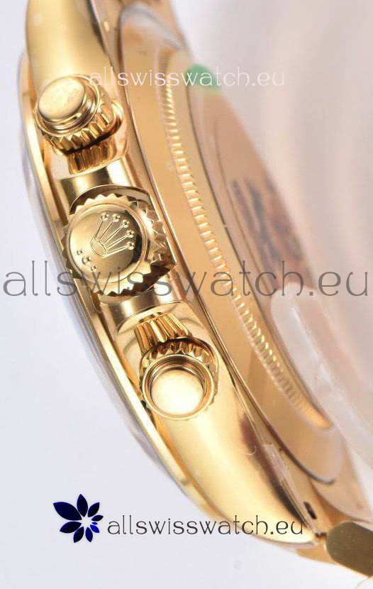 18K Yellow Gold Plating on 904 Solid Stainless Case with Rolex Markings and Engravings like the Authentic.