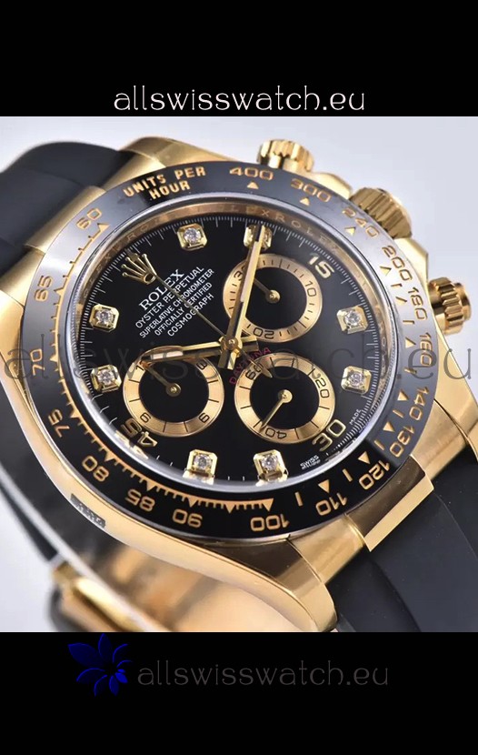 The Best Rolex Daytona Model Replicated up to Date. The First Rolex model to adopt a 904L Steel on Casing and Strap which is the same steel used by Rolex. Compared with an Original Side by Side and there were NO Differences Whatsoever. Complete list of details have been stated below and you will see that tremendous amount of detaiing and work has been put into this edition.
