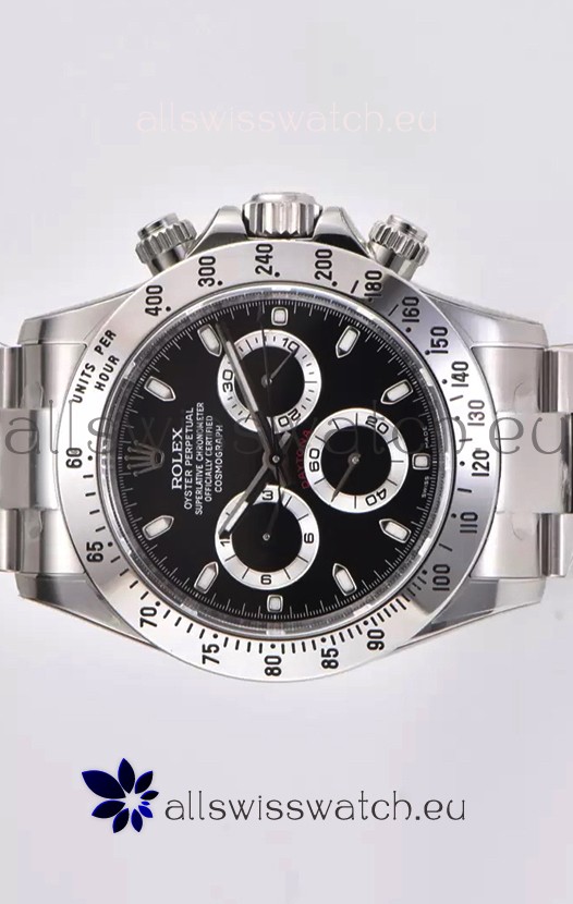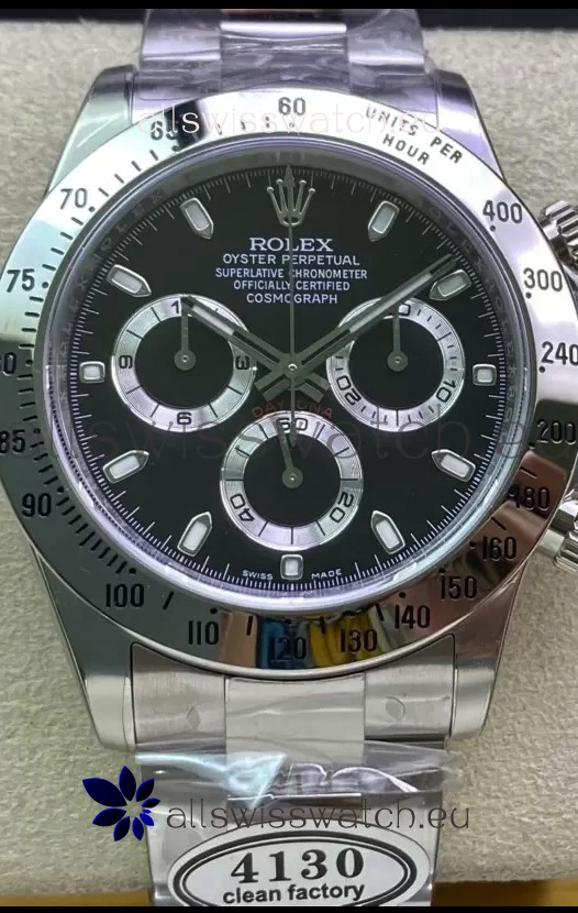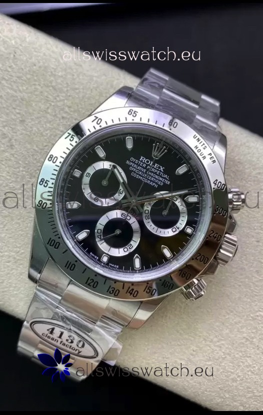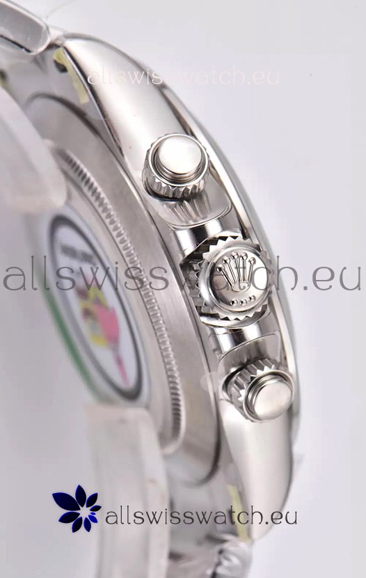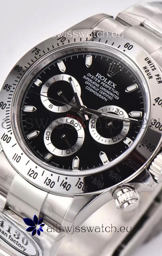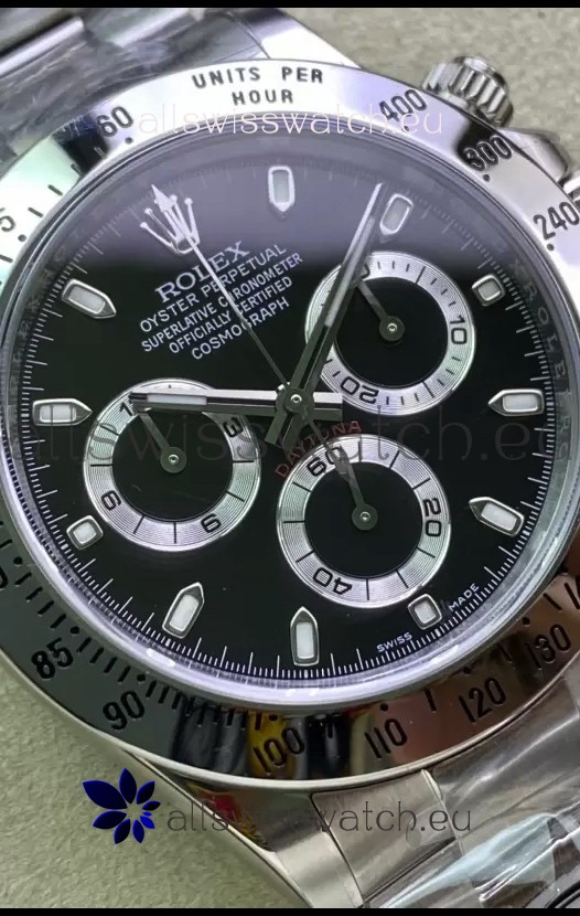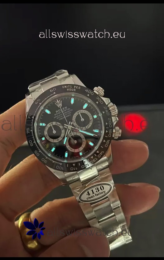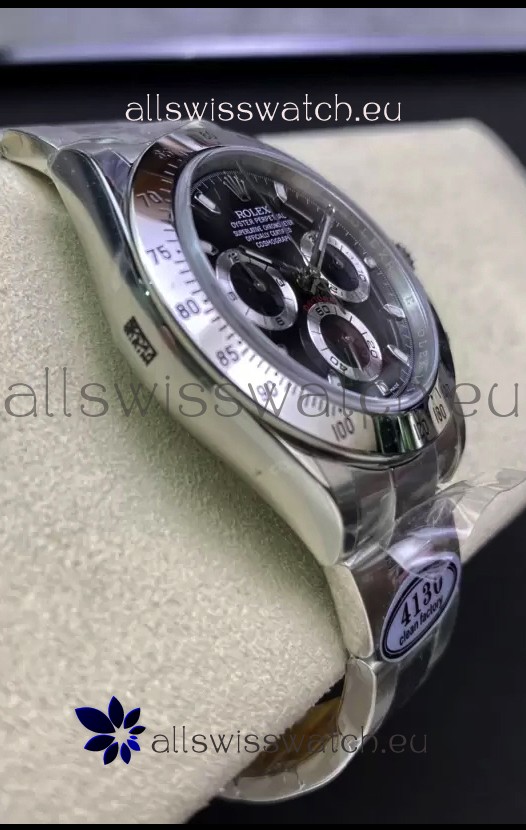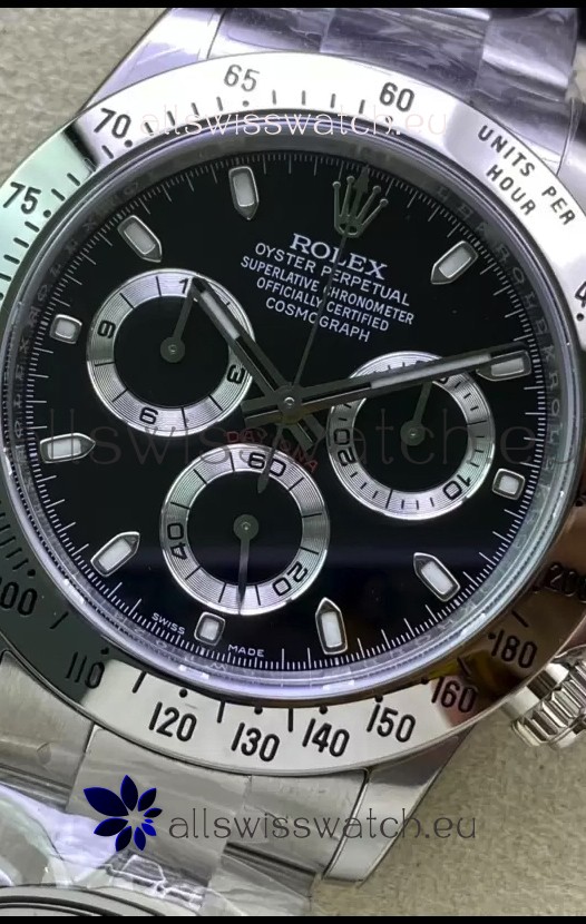The Best Rolex Daytona Model Replicated up to Date. The First Rolex model to adopt a 904L Steel on Casing and Strap which is the same steel used by Rolex. Compared with an Original Side by Side and there were NO Differences Whatsoever. Complete list of details have been stated below and you will see that tremendous amount of detaiing and work has been put into this edition.