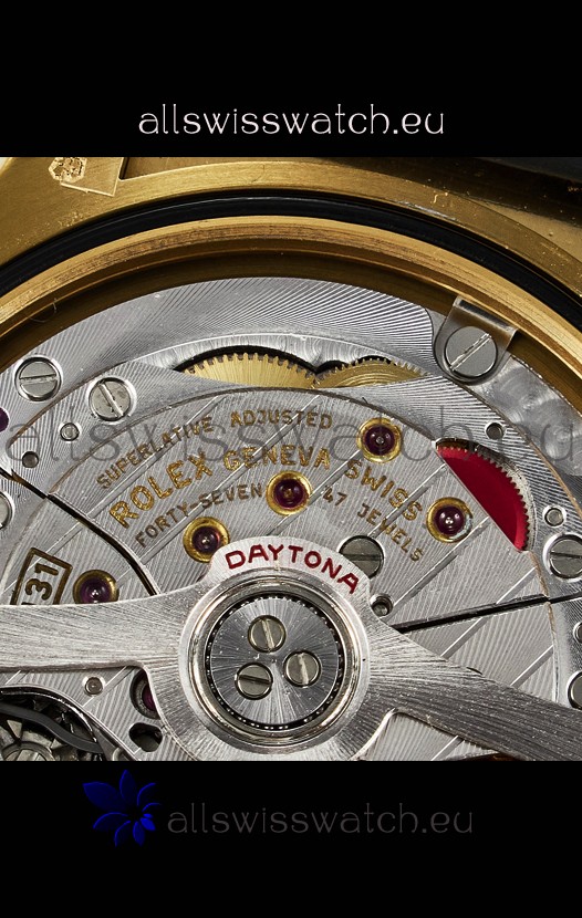 Genuine Cal.4131 Movement built from Scratch with no modifications, Platinum Plating on Rotors and Plates as per the original. The Same movement you find in Rolex Daytona Watches