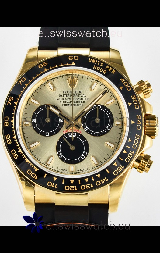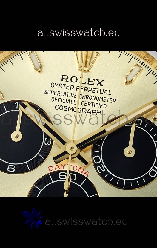 The Best Rolex Daytona Model Replicated up to Date. The First Rolex model to adopt a 904L Steel on Casing and Strap which is the same steel used by Rolex. Compared with an Original Side by Side and there were NO Differences Whatsoever. Complete list of details have been stated below and you will see that tremendous amount of detaiing and work has been put into this edition.