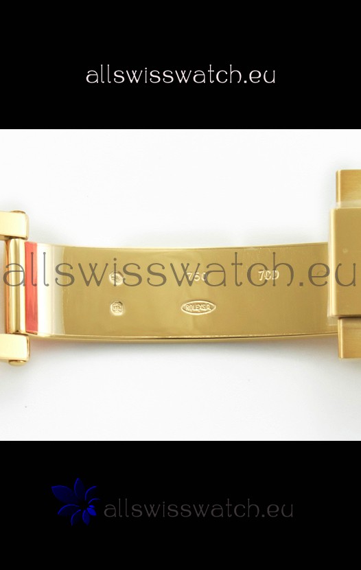 Yellow Gold Plating on 904 Solid Stainless Case with Rolex Markings and Engravings like the Authentic.