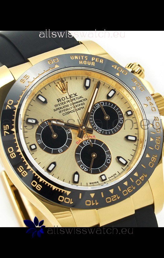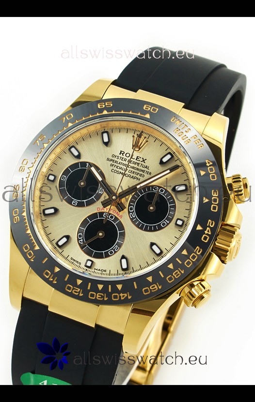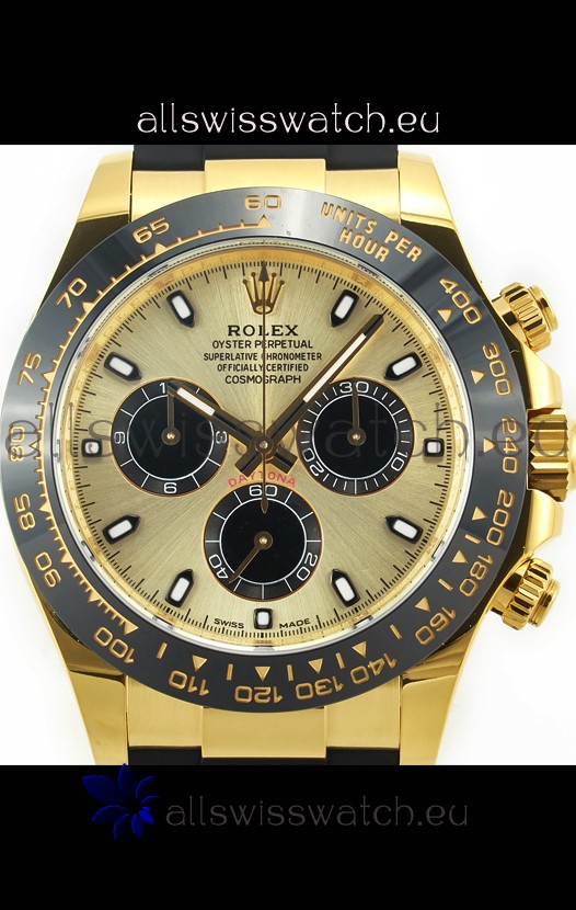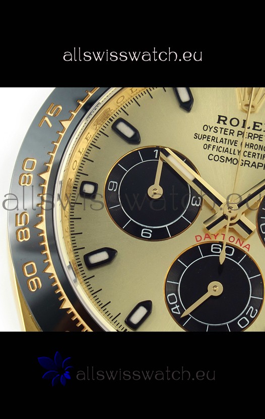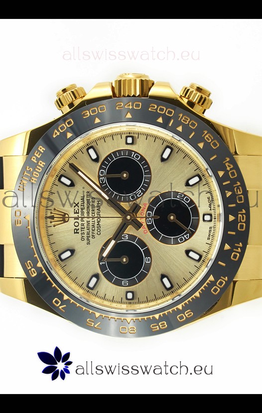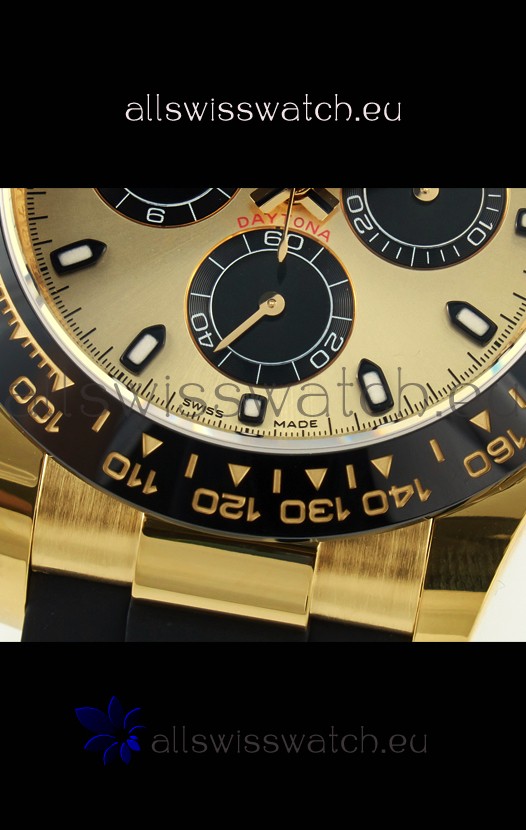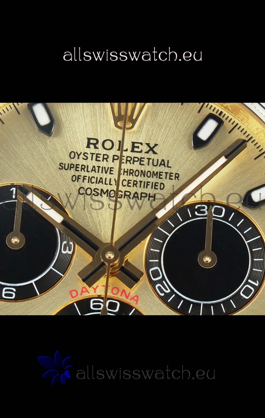The Best Rolex Daytona Model Replicated up to Date. The First Rolex model to adopt a 904L Steel on Casing and Strap which is the same steel used by Rolex. Compared with an Original Side by Side and there were NO Differences Whatsoever. Complete list of details have been stated below and you will see that tremendous amount of detaiing and work has been put into this edition.