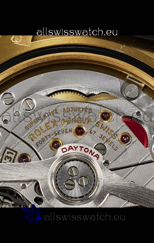 Genuine Cal.4131 Movement built from Scratch with no modifications, Platinum Plating on Rotors and Plates as per the original. The Same movement you find in Rolex Daytona Watches