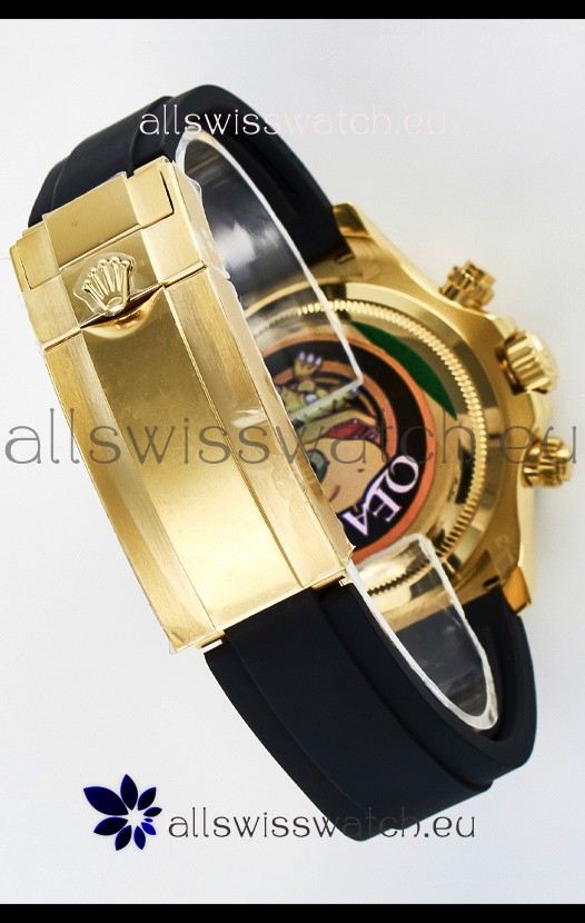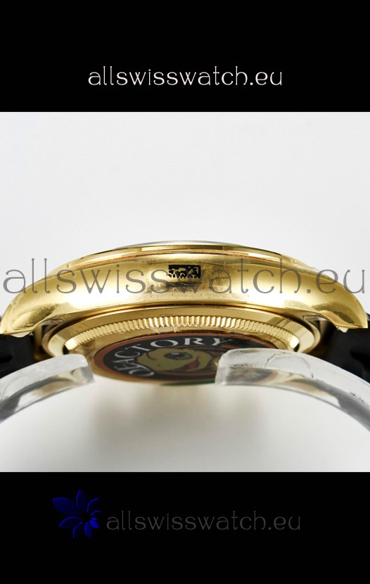 Yellow Gold Plating on 904 Solid Stainless Case with Rolex Markings and Engravings like the Authentic.