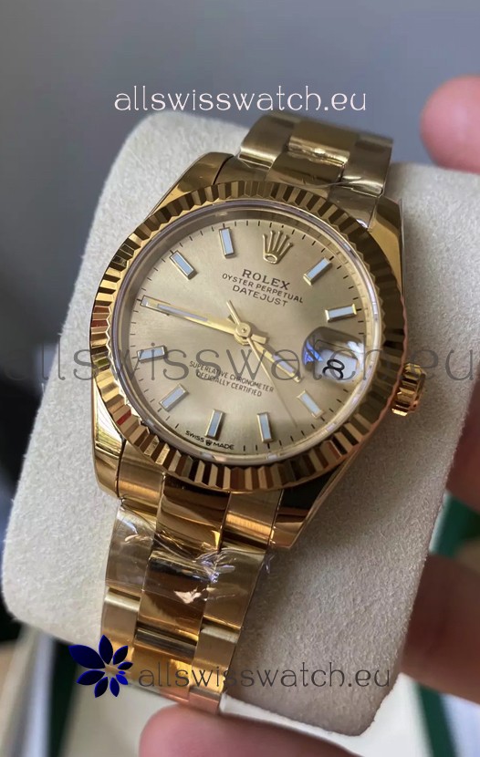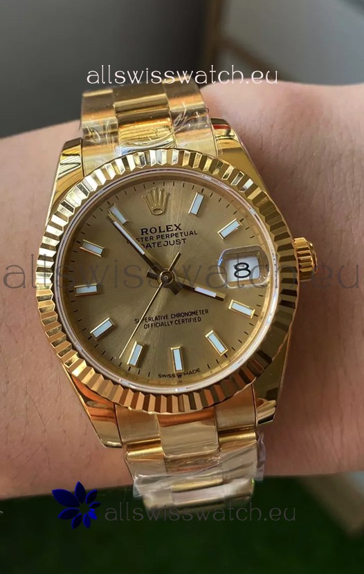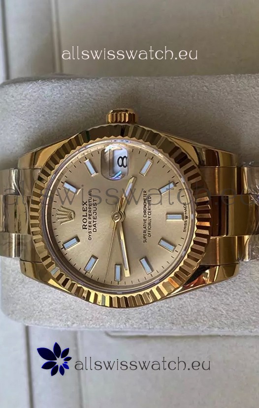 Rolex Datejust 278278 31MM Swiss Replica in 904L Steel Yellow Gold Casing in Stick Markers 1:1 Mirror Quality