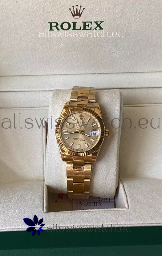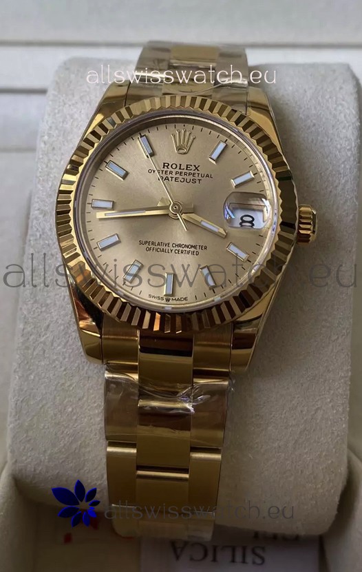 You're reviewing: Rolex Datejust 278278 31MM Swiss Replica in 904L Steel Yellow Gold Casing in Stick Markers 1:1 Mirror Quality