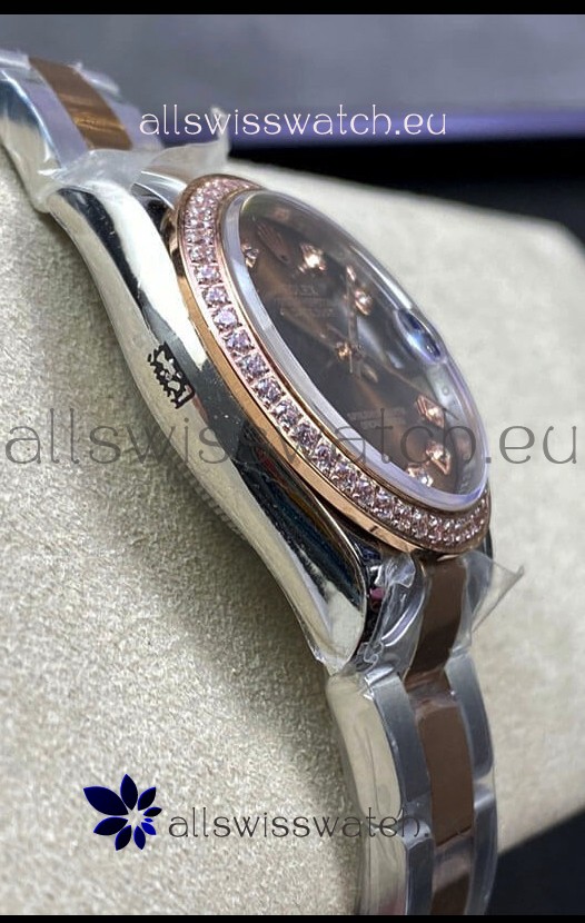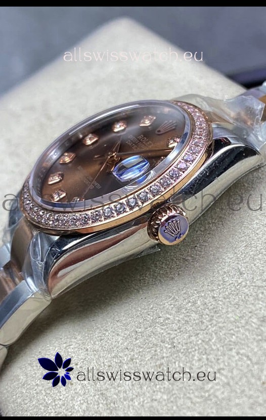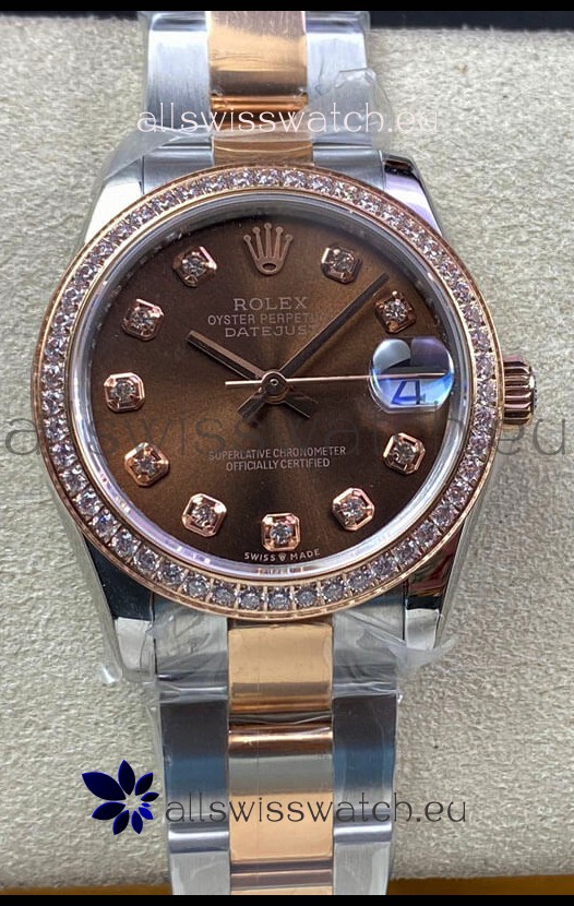 Rolex Datejust 278381 31MM Swiss Replica in 904L Steel Two Tone Rose Gold Brown Dial 1:1 Mirror Replica