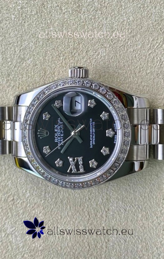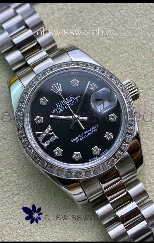Rolex Datejust 28MM Swiss Replica in 904L Steel in Black Dial - 1:1 Mirror Replica