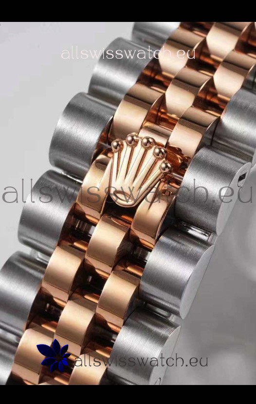 Rose Gold Plating on 904L Stainless Steel Two Tone strap with Folding Clasp, End links match up Flush with the Case. - A Much Improved Datejust Strap Version