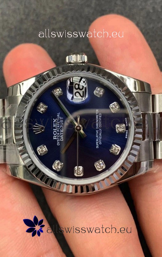 Rolex Datejust 31MM ETA-2671 Movement Swiss Replica in 904L Steel in Blue Dial