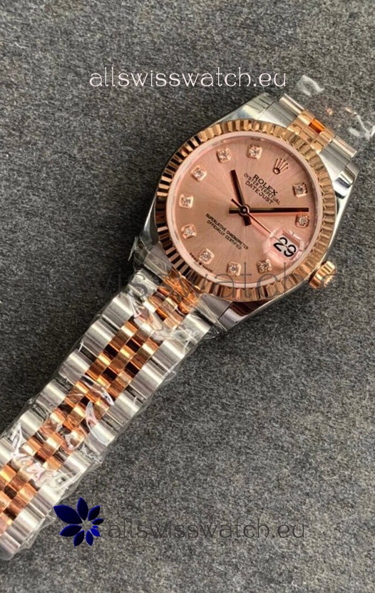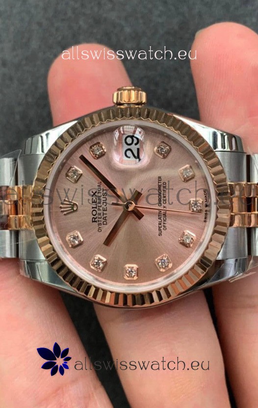 Rolex Datejust 31MM ETA-2671 Movement Swiss Replica in 904L Two Tone Rose Gold in Gold Dial